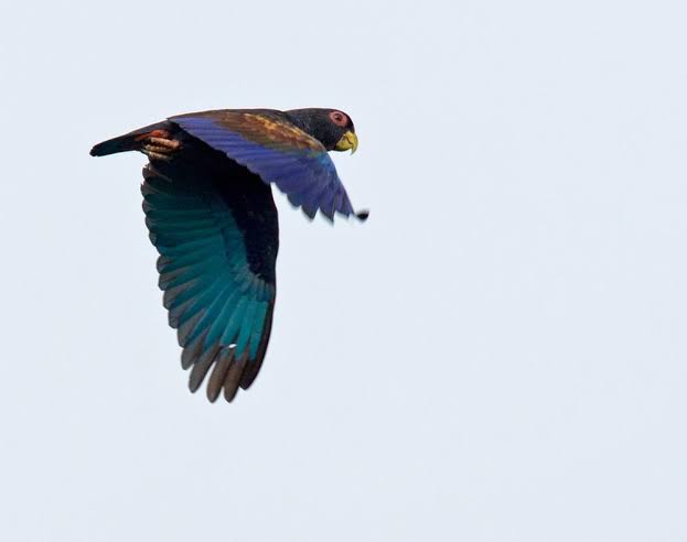 A way to distinguish an adult bronze-winged parrot form a juvenile is through the eye rings, the adults have a more pinkish eye rings while juveniles have a whitish eye rings with greenish head, brownish underparts, and black back part. As its name implies, it has a bronze patch on the wings that is pronounced. The color combinations of this parrot are stunning, making it loved by bird lovers.